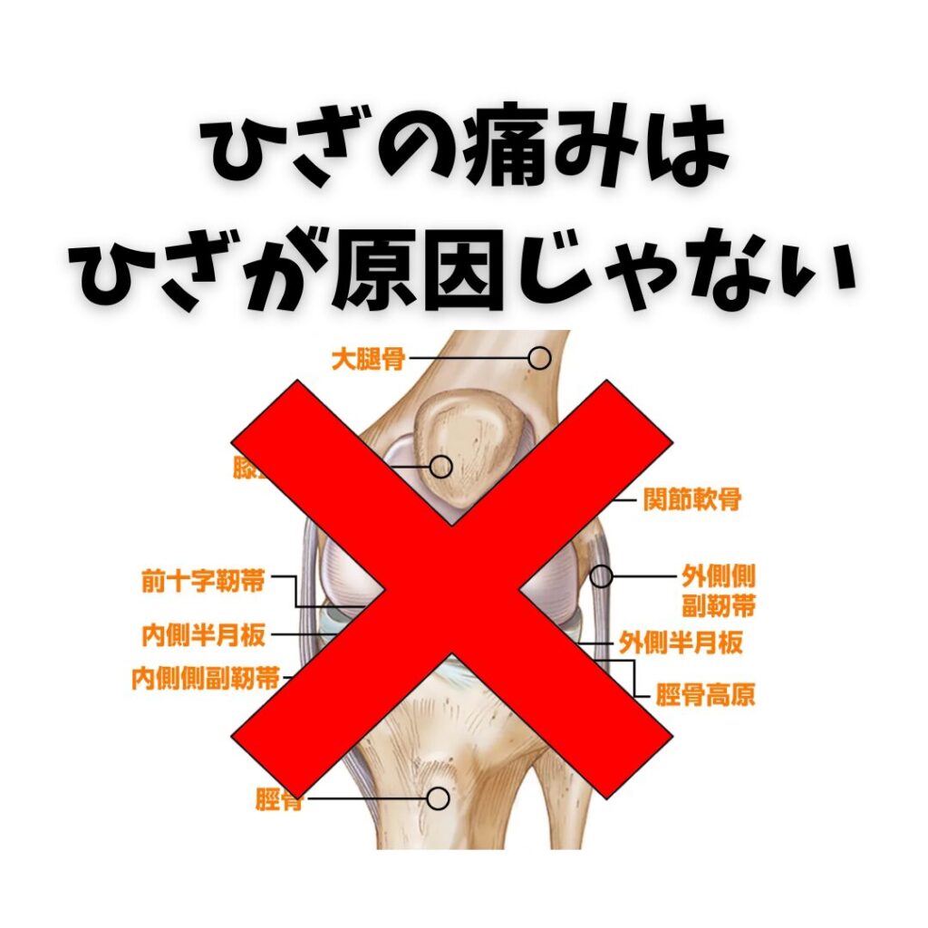 「膝の痛みは膝が原因じゃない」という考えは、膝以外の体の部位のゆがみや機能不全が、膝に負担をかけて痛みにつながっているというものです。整形外科の医師にとっては常識的な見解とされています。