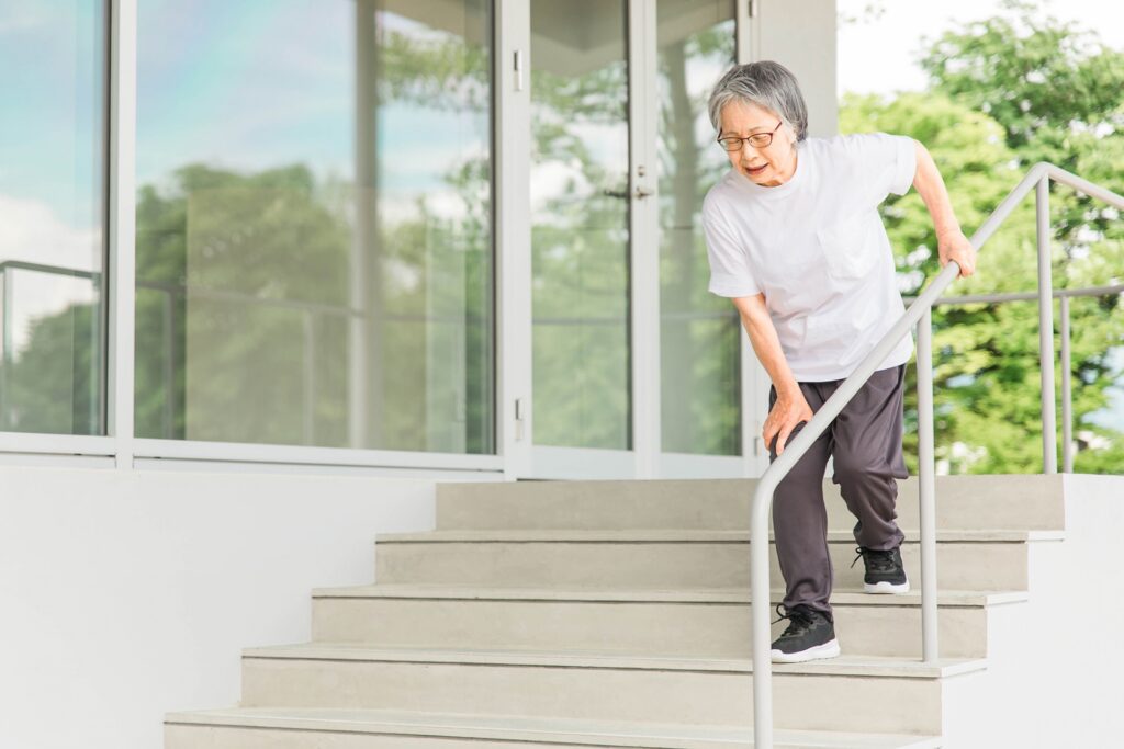 階段の下り方: 痛い方の足を先に着地させると、体重の数倍の衝撃が膝に集中します。