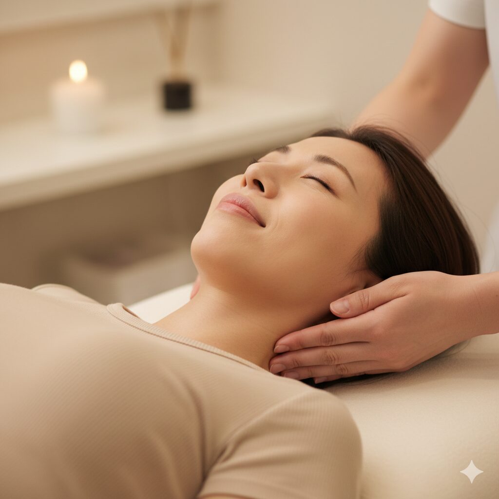 ⑵脳の警戒システムをリセットする: 優しく心地よい刺激を通じて、脳に「もう固めなくても大丈夫だよ」という安心を届け、筋肉の過警戒を解きます。
