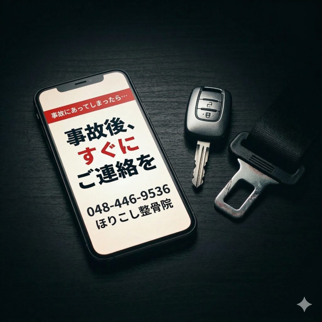 事故直後の対応は、その後のご自身の体調回復、そして正当な補償を受けられるかどうかの「運命」を決定づけます。パニック状態でも、以下のステップだけは確実に行う、あるいは当院へすぐにお電話でご相談ください。